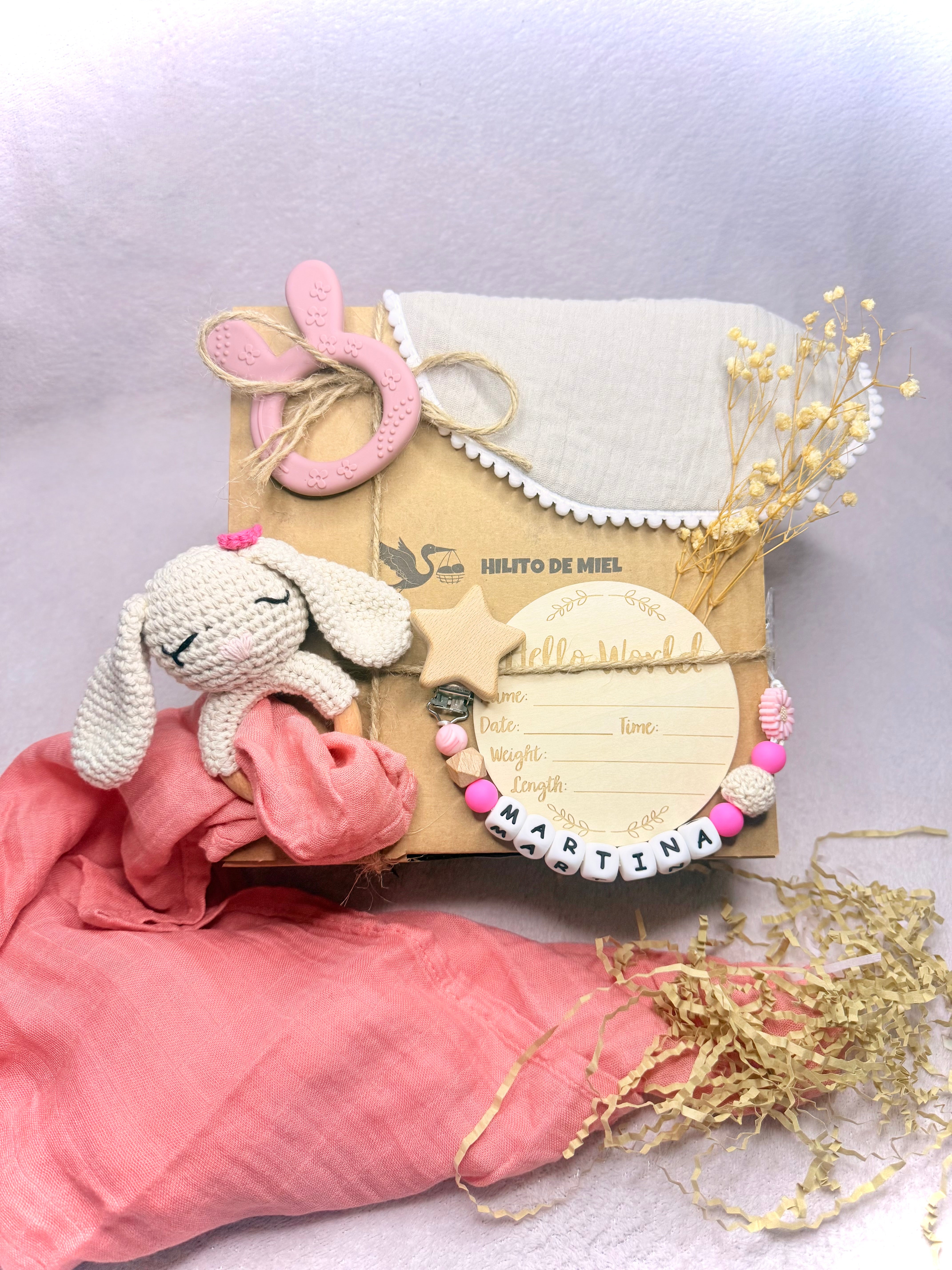• Chupete personalizado con el nombre del bebé (contactar por whatsApp para concretar nombre) Nuestros chupeteros cumplen con la normativa europea.