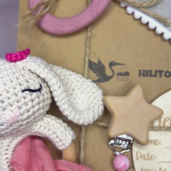 • Sonajero Amirugumi Conejita con orejas caidas hecho a mano.