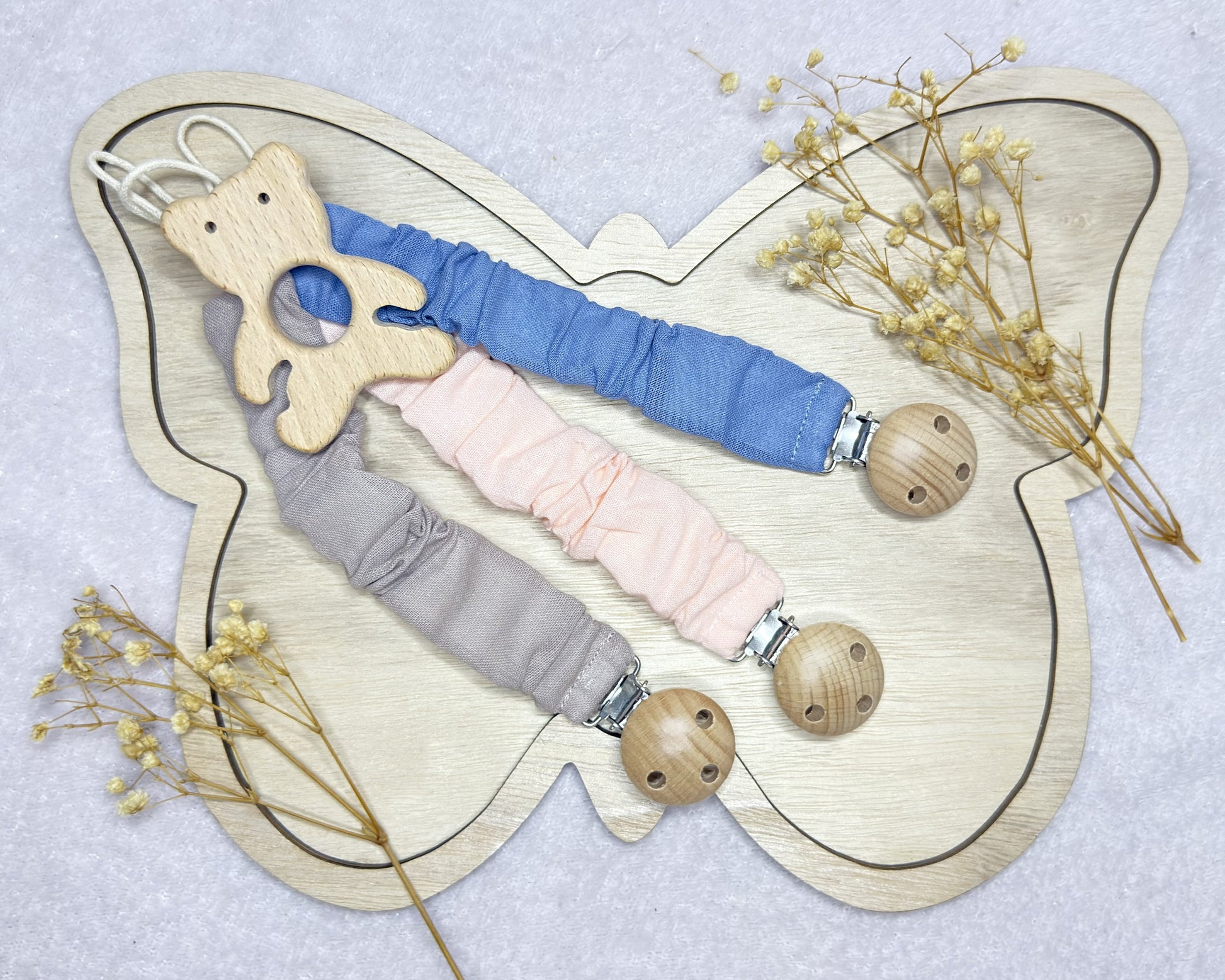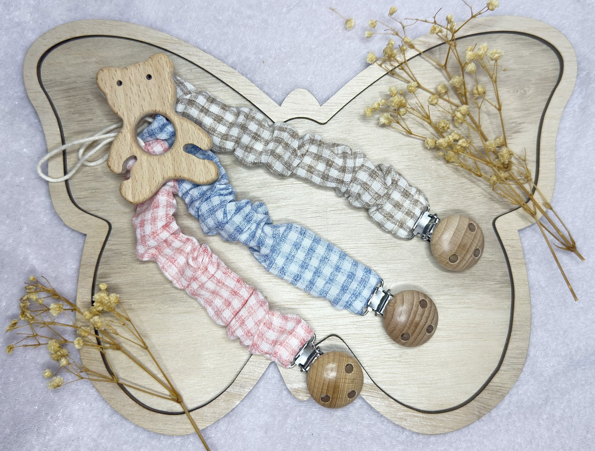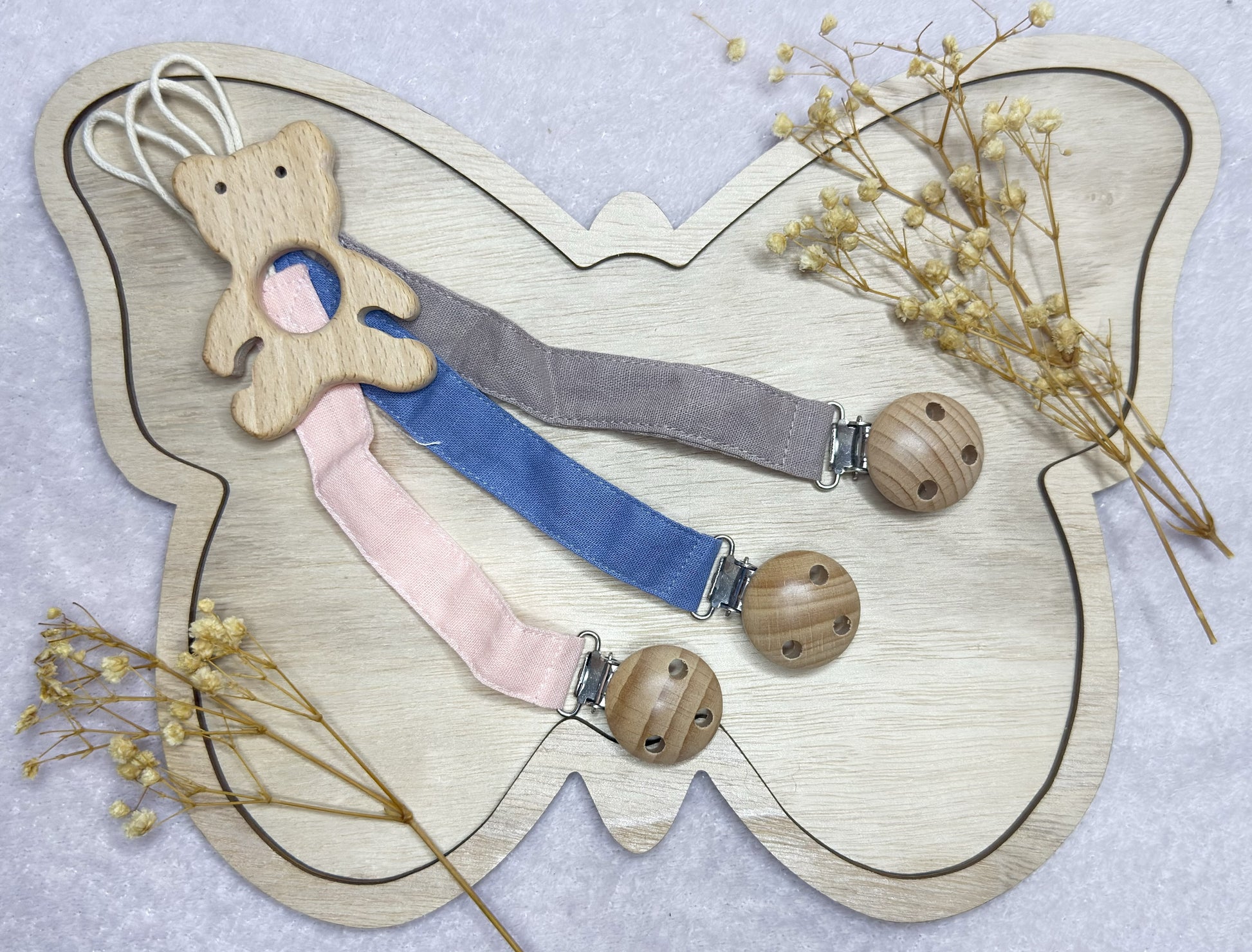 Mantén el chupete siempre limpio, seguro y al alcance de tu bebé con este práctico chupetero de tela. Confeccionado con telas suaves, resistentes y libres de sustancias tóxicas, es un accesorio cómodo y seguro que acompaña al pequeño en su día a día.