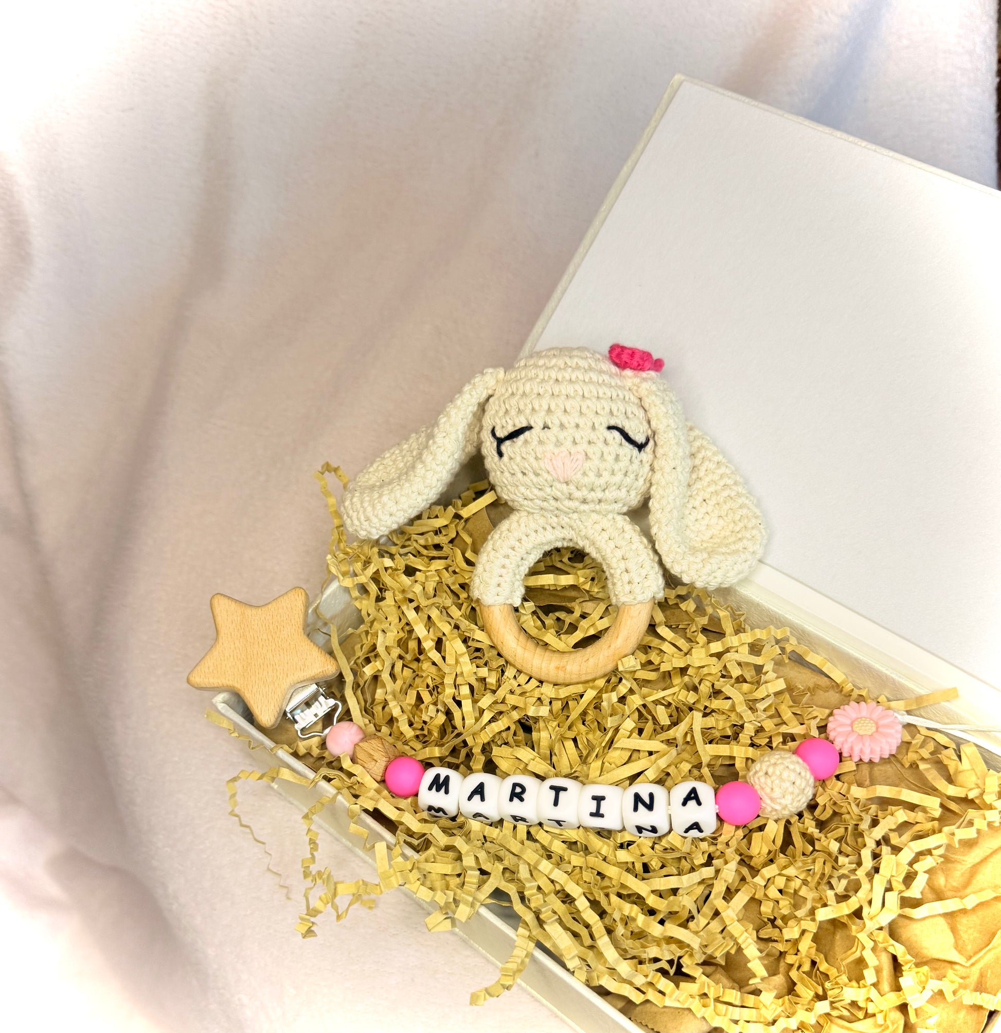 🍼 Chupetero personalizado con el nombre del bebé, práctico y original para mantener el chupete siempre a mano.